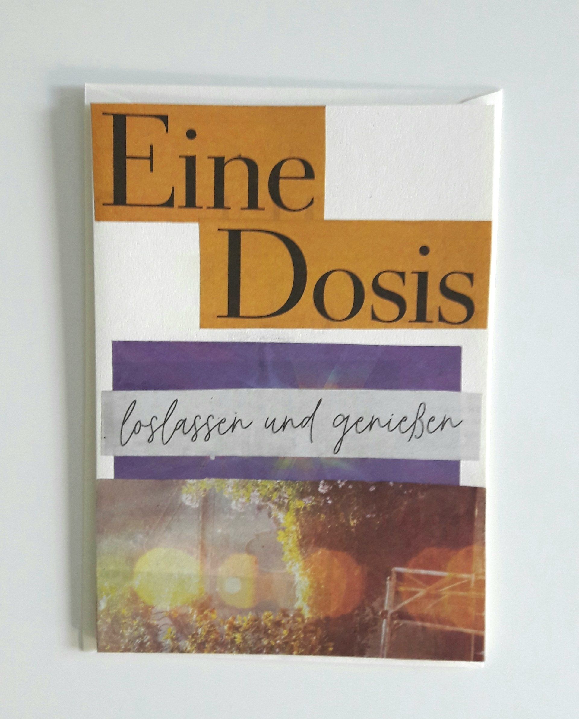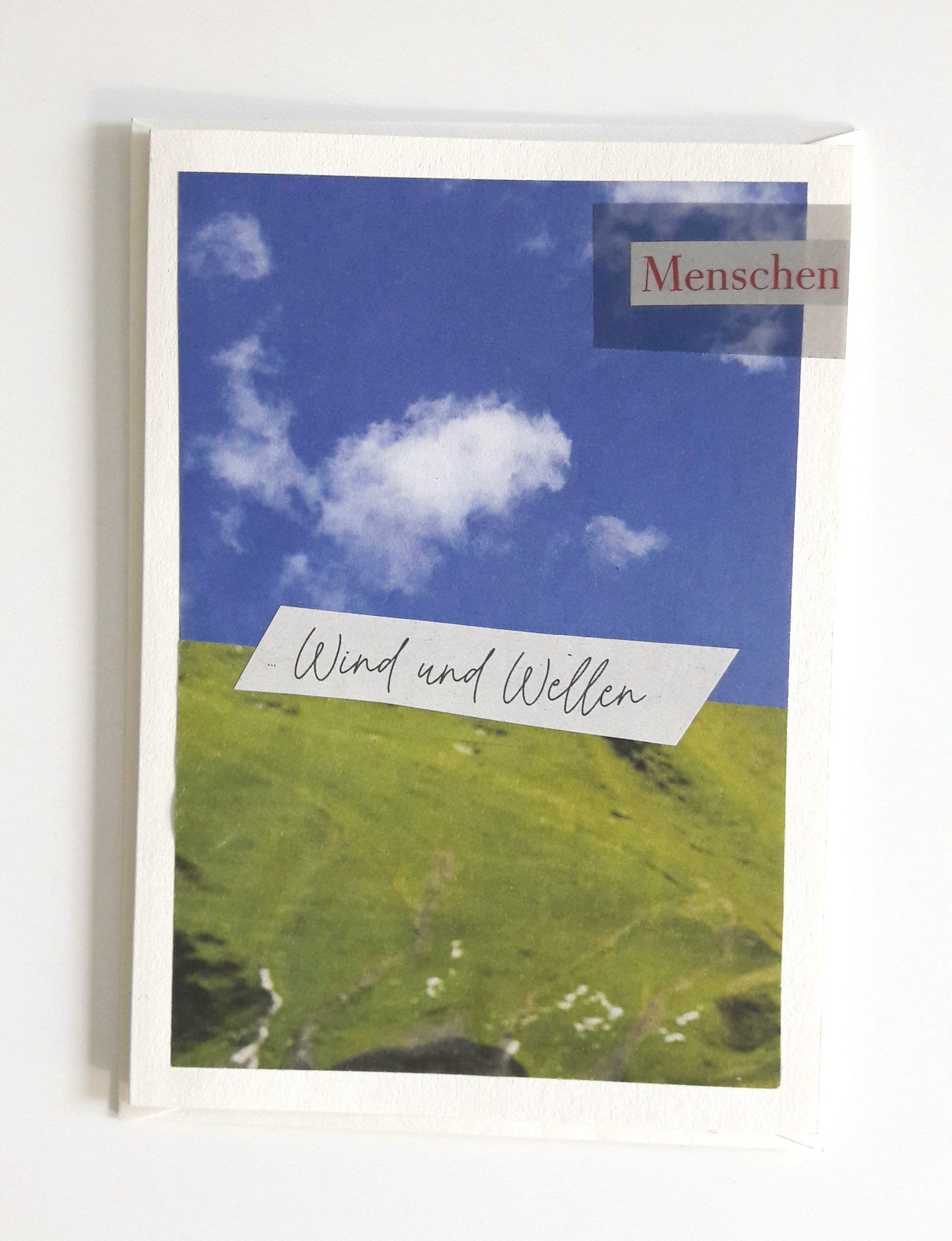 Die Faltkarten aus festem naturweißem Karton im Hochformat 12 x 17 cm sind als Collagen aus Zeitungspapier gestaltet.