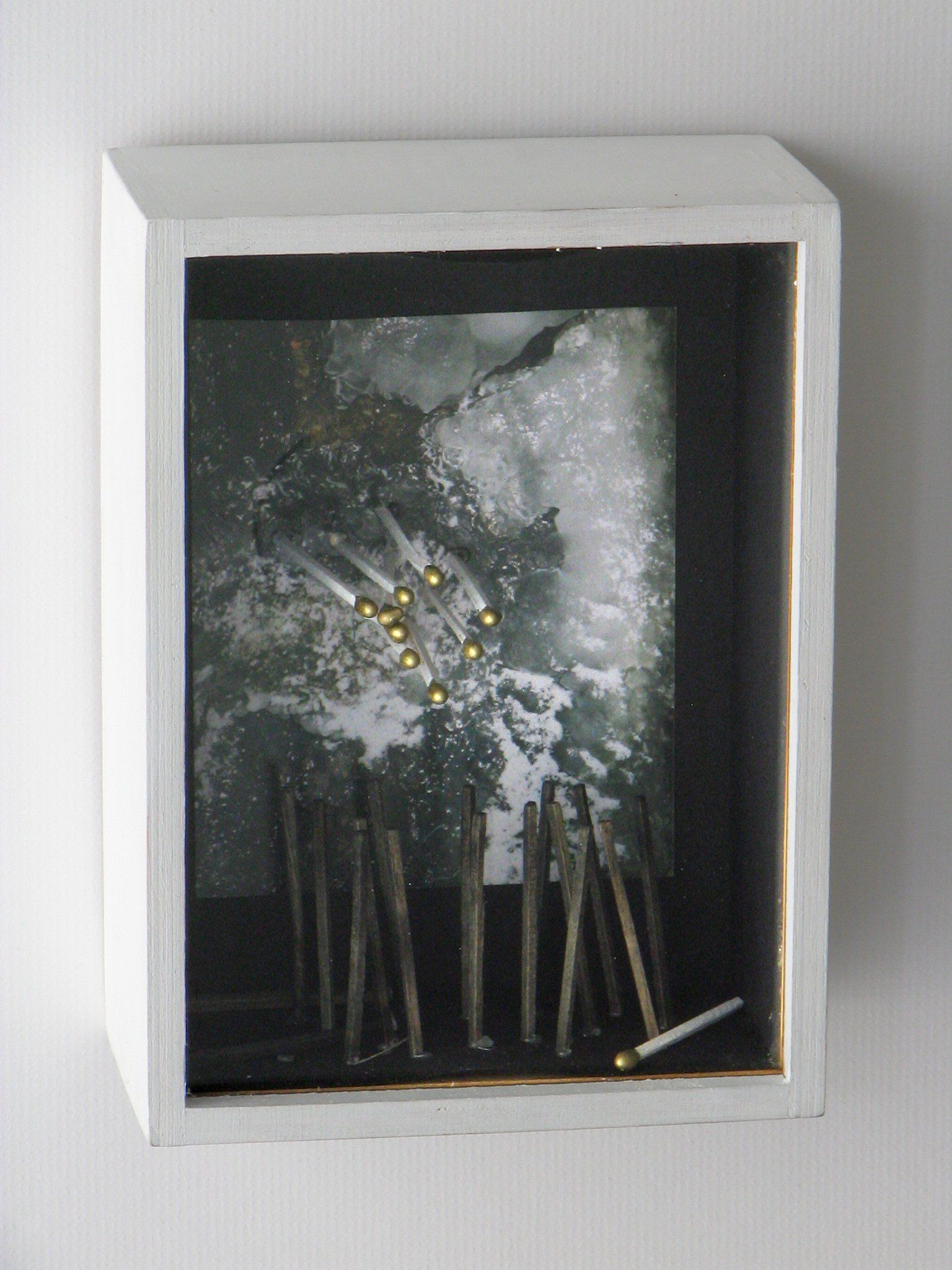 mit Foto, Streichhölzer, Goldlack und Acrylfarbe (beleuchet)