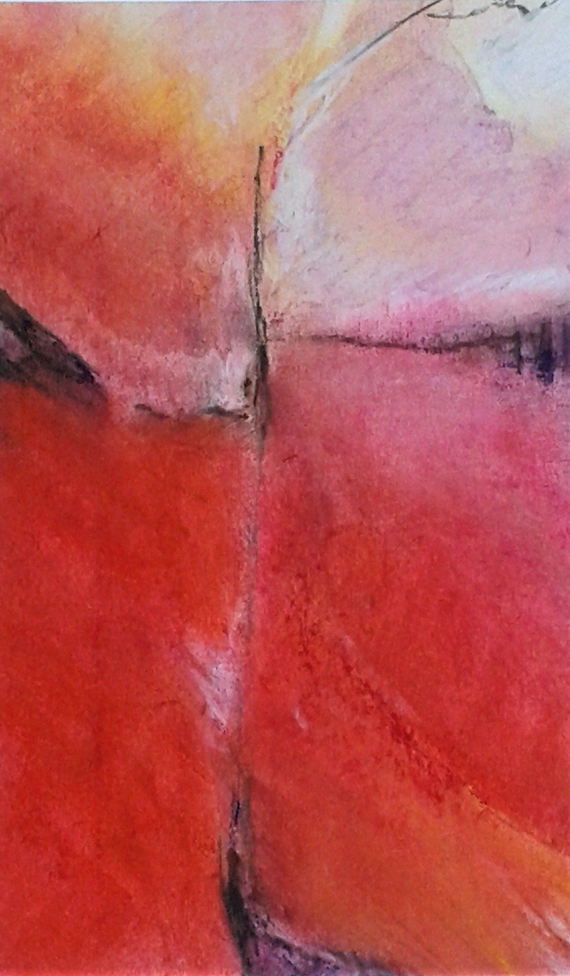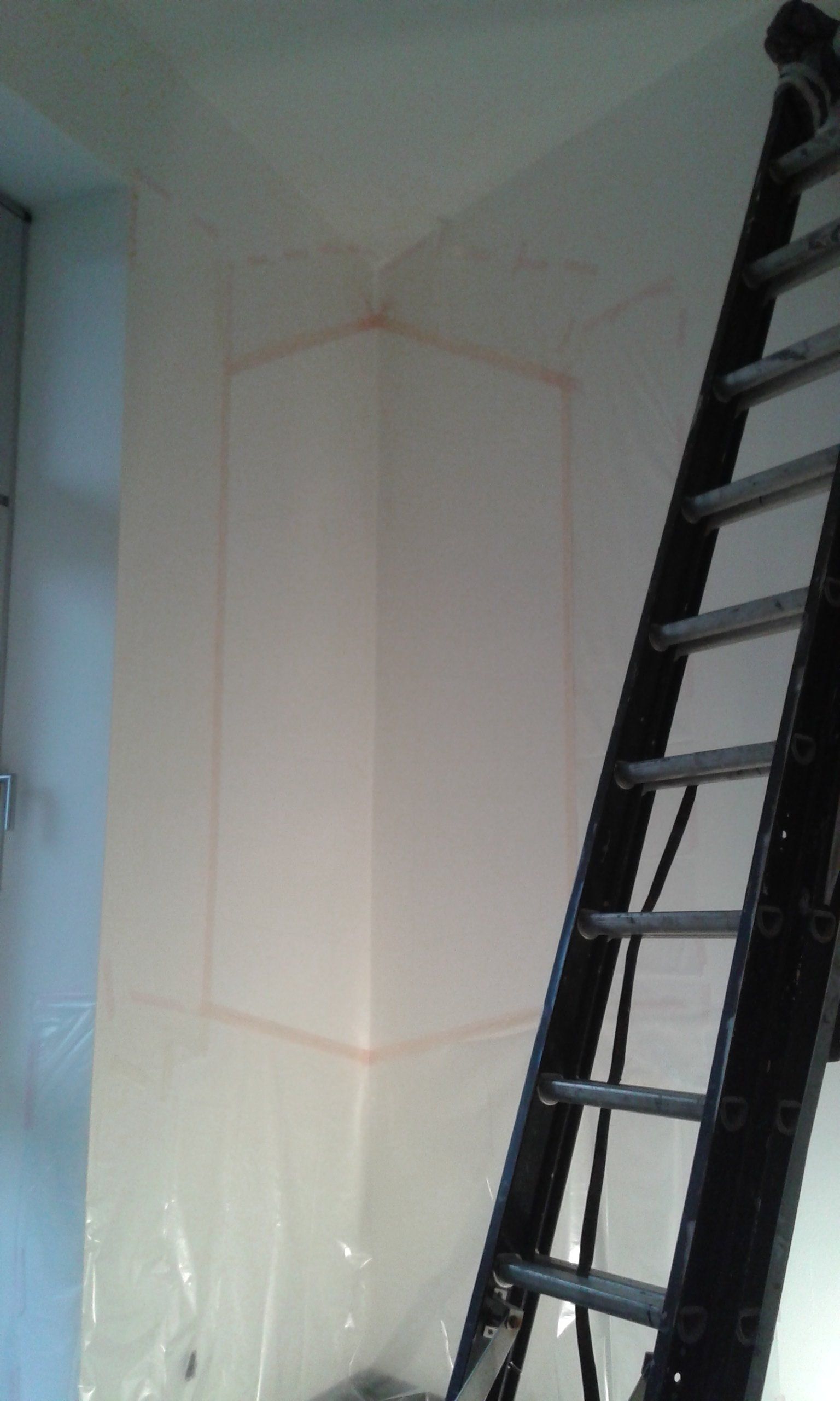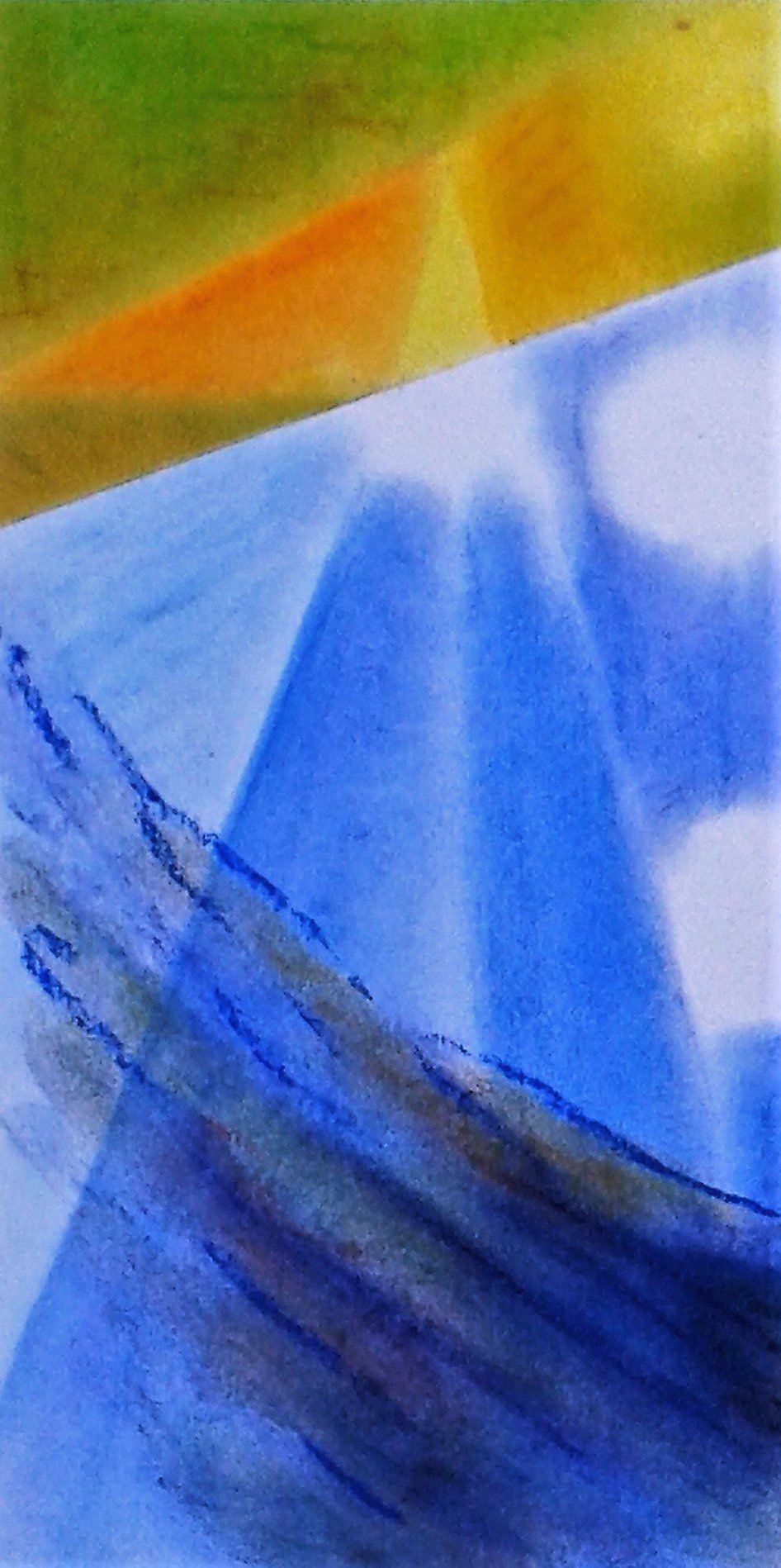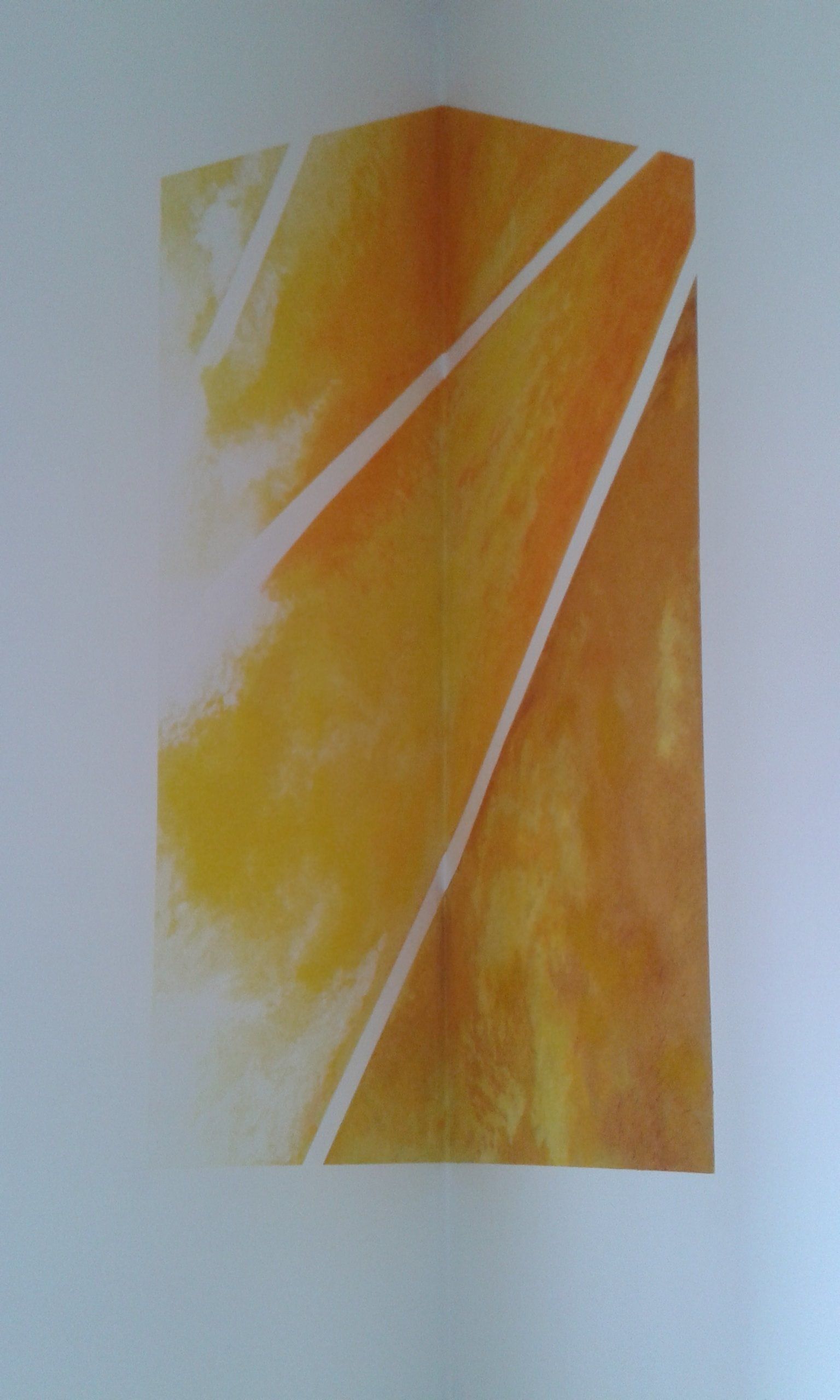 Es entstanden 3 großformatige Wandbilder mit den Titeln „das Licht“ (102cm x 160cm), „der Weg“ (98cm x 195cm) und „die Liebe“ (100cm x 167cm). Das Gemälde „das Licht“ stellte dabei für mich eine besondere Herausforderung dar, da ich es im spitzen Winkel des Raumes durch eine Fluchtpunktperspektive auf den Betrachter ausrichten musste.