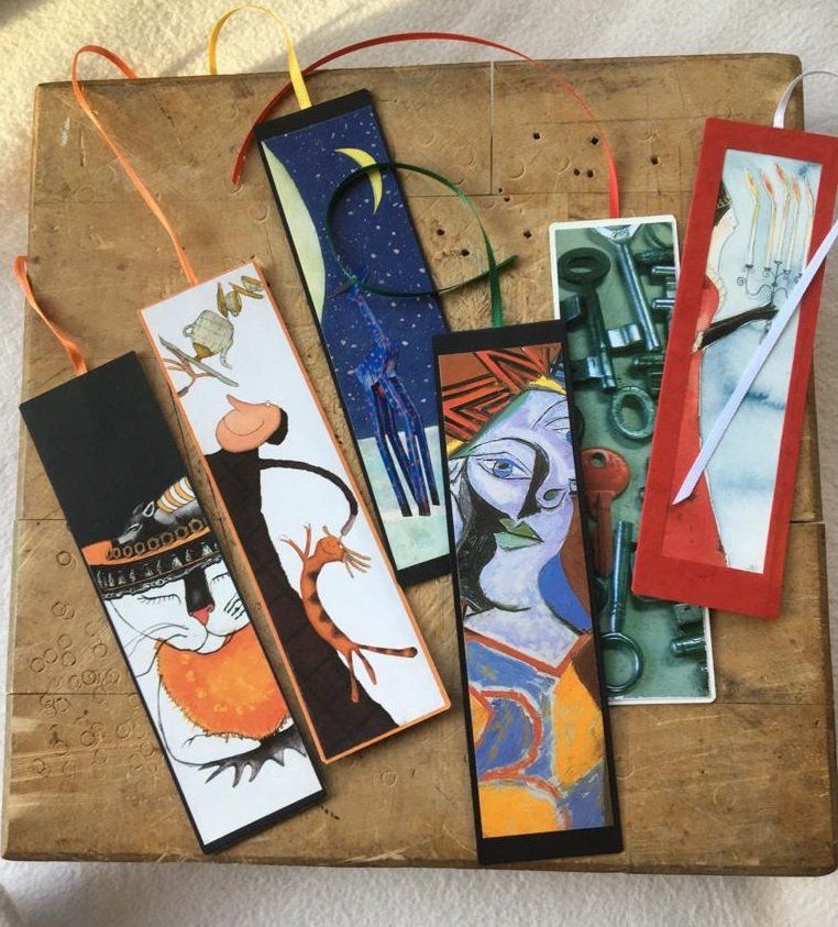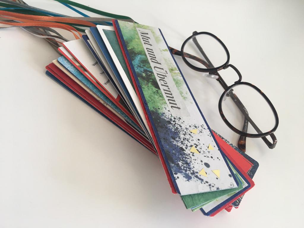 so habe ich mit diesen Lesezeichen in Collagetechnik begonnen.
