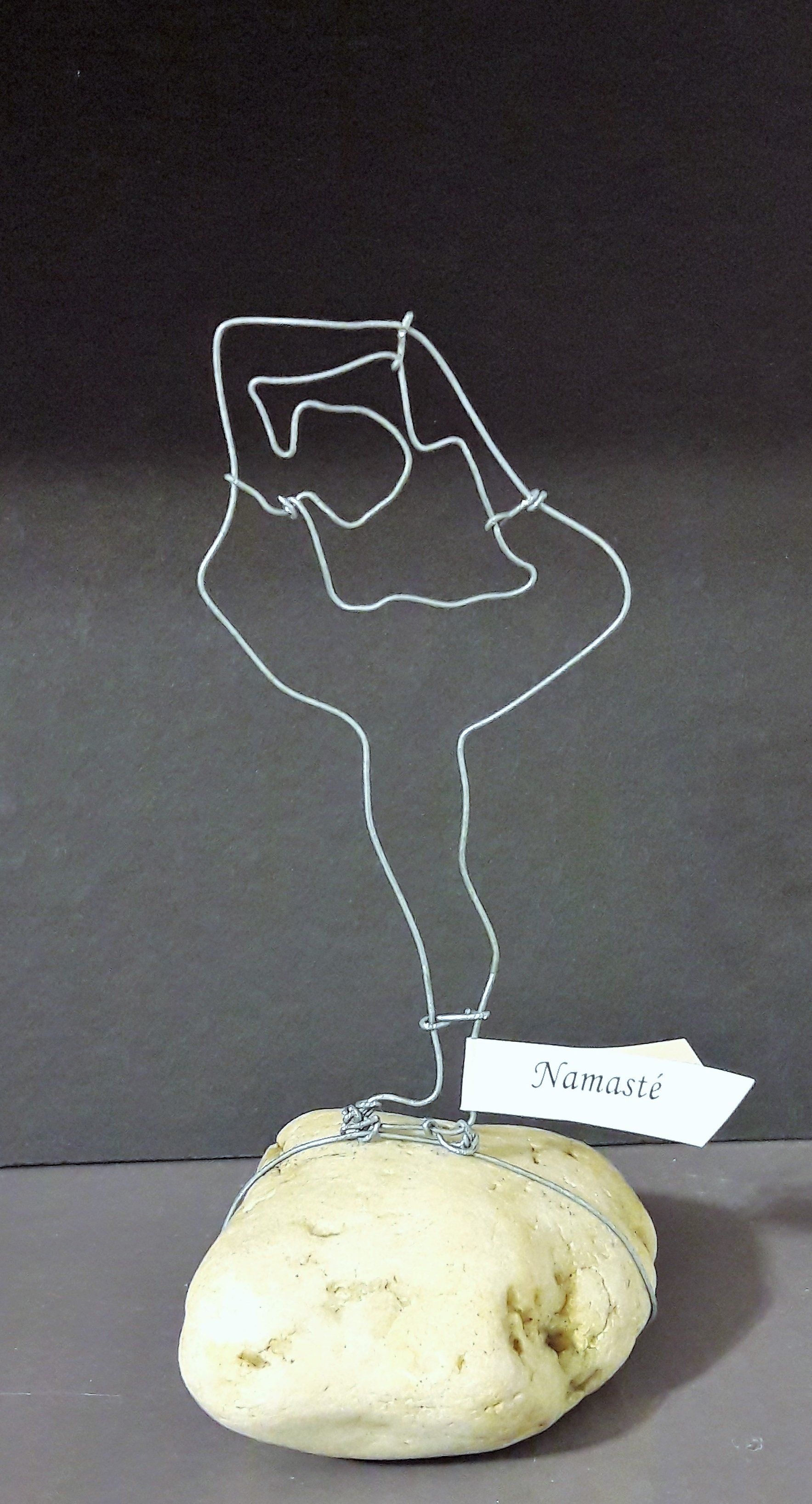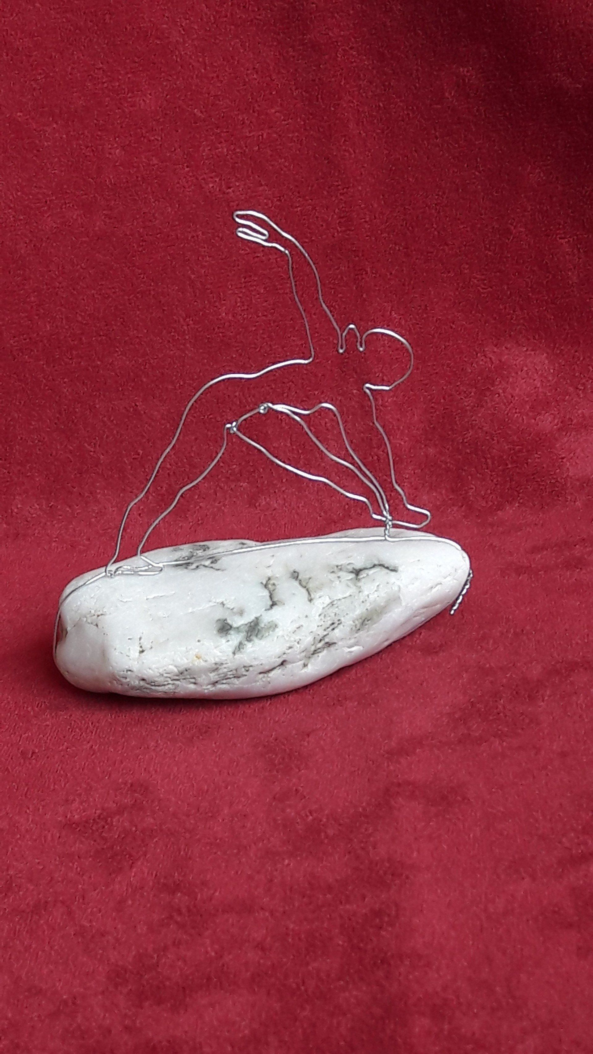 Meine Yogafiguren forme ich aus verzinktem Bindedraht und befestige sie auf glatten "Wassersteinen". D.h. sie sind vom Wasser glatt geschliffen und nicht künstlich gerundet. Alle Steine sind gefundene Steine, die ich oder meine Freunde an Bach- oder Flussufern finden. Bei den Figuren orientiere ich mich an realen Stellungen aus dem Yoga.